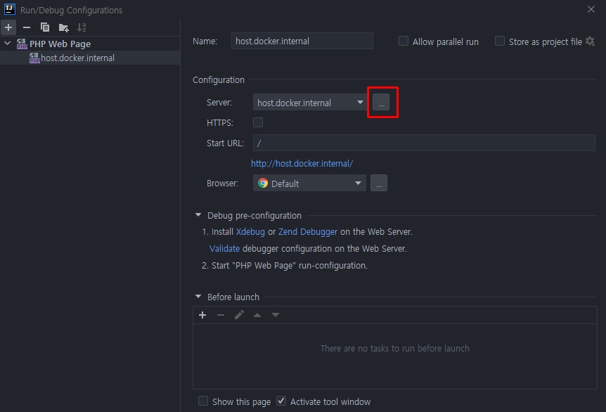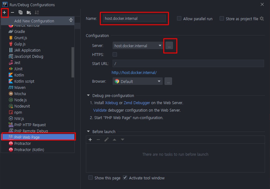 + 버튼 (Add New Configuration) 클릭 -> PHP Web Page 클릭